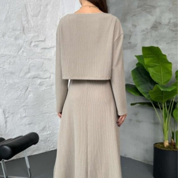 ¡No puedo creer que conseguí este set con tanto descuento! Se siente como una prenda de lujo; el punto es muy suave y la caída de la falda es preciosa. Es comodísimo para llevarlo todo el día y seguir viéndote arreglada. ¡Voy a pedirlo en otro color en cuanto esté disponible!