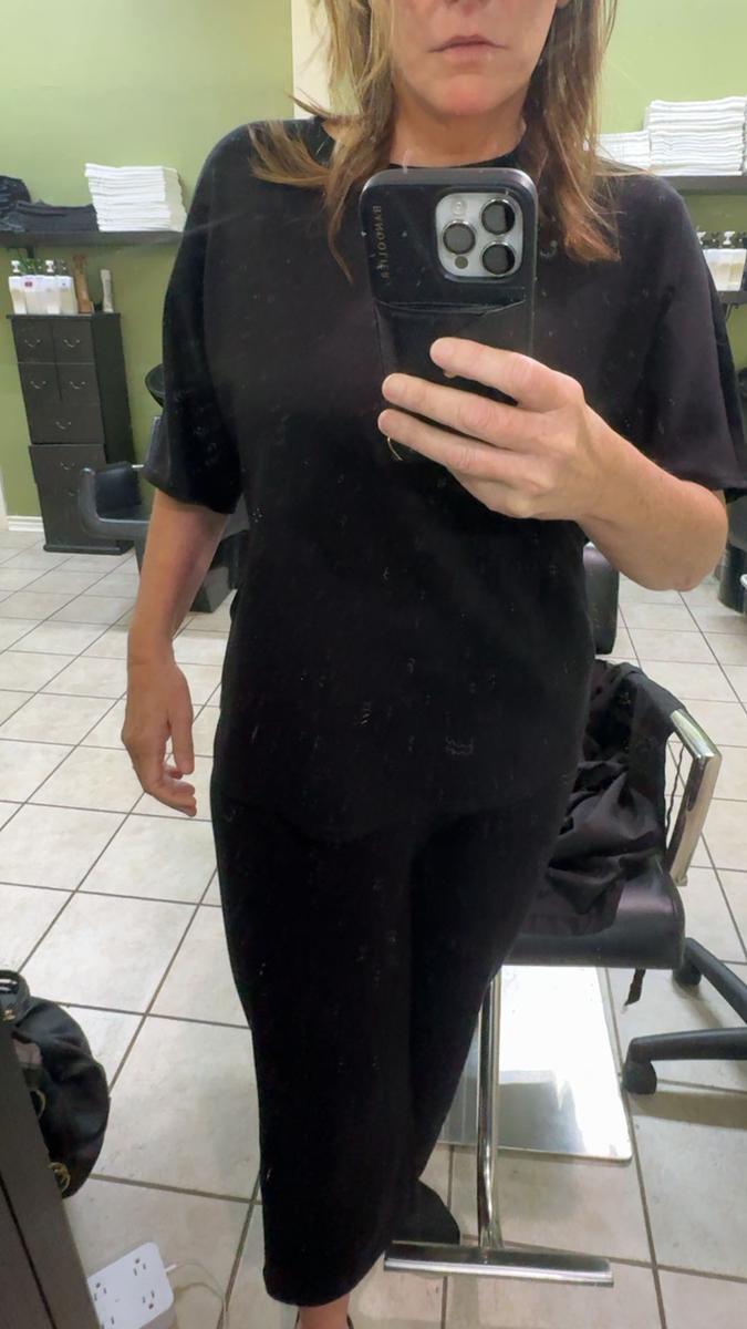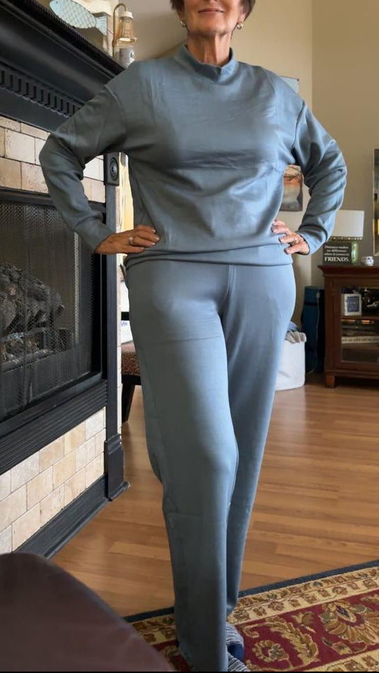 Tengo 58 años y este conjunto me ha devuelto la confianza de ir cómoda pero bien vestida. El pantalón no marca nada y tiene una caída que estiliza mucho las piernas; es mi uniforme favorito para viajar