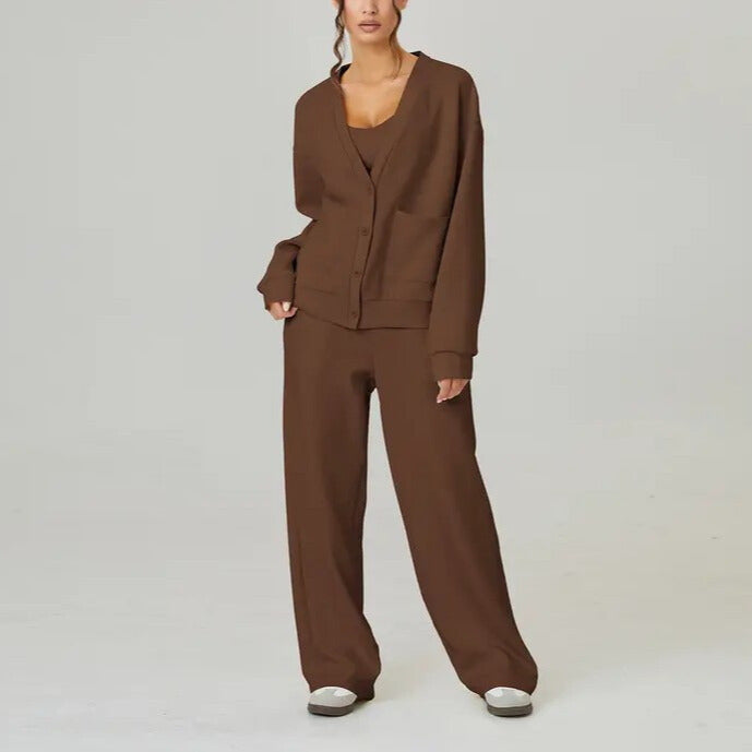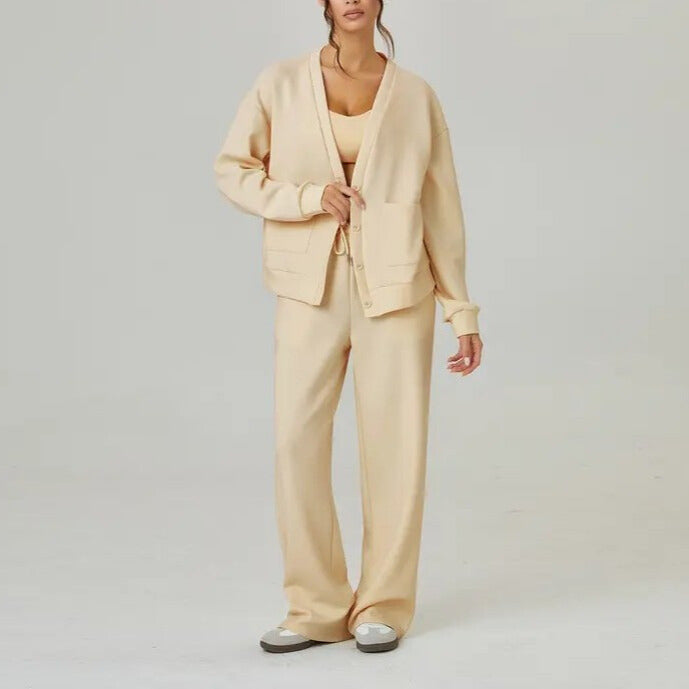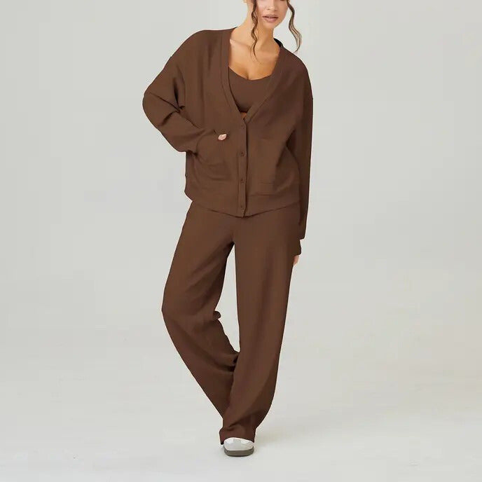 Llegó rápido y la calidad me sorprendió. El cardigan tiene una caída preciosa y el pantalón queda suelto pero elegante. Muy recomendable.