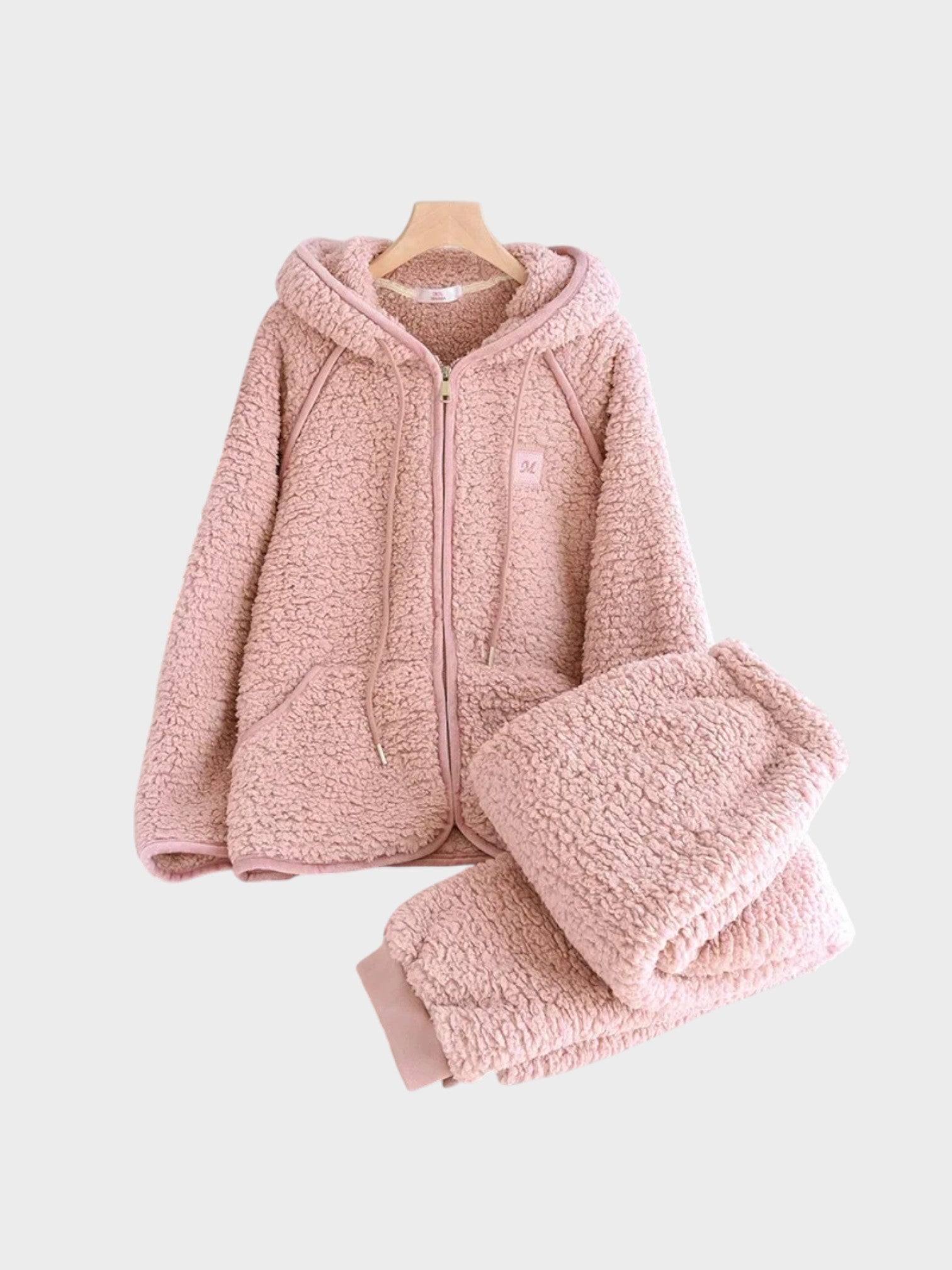 Vivo en una zona muy fría y este conjunto es lo mejor que he comprado en años. La tela de borreguito es increíblemente suave y realmente mantiene el calor sin ser pesada. Me encanta que la capucha cubre muy bien y los bolsillos son súper prácticos para traer el celular en casa.