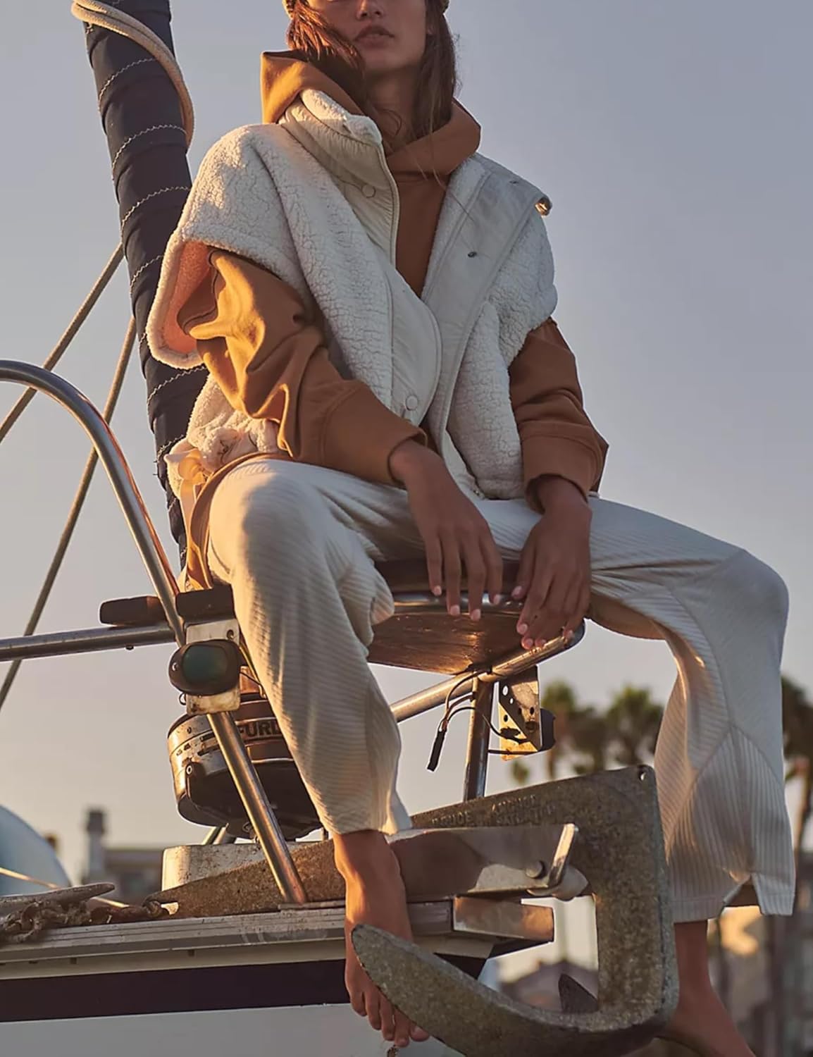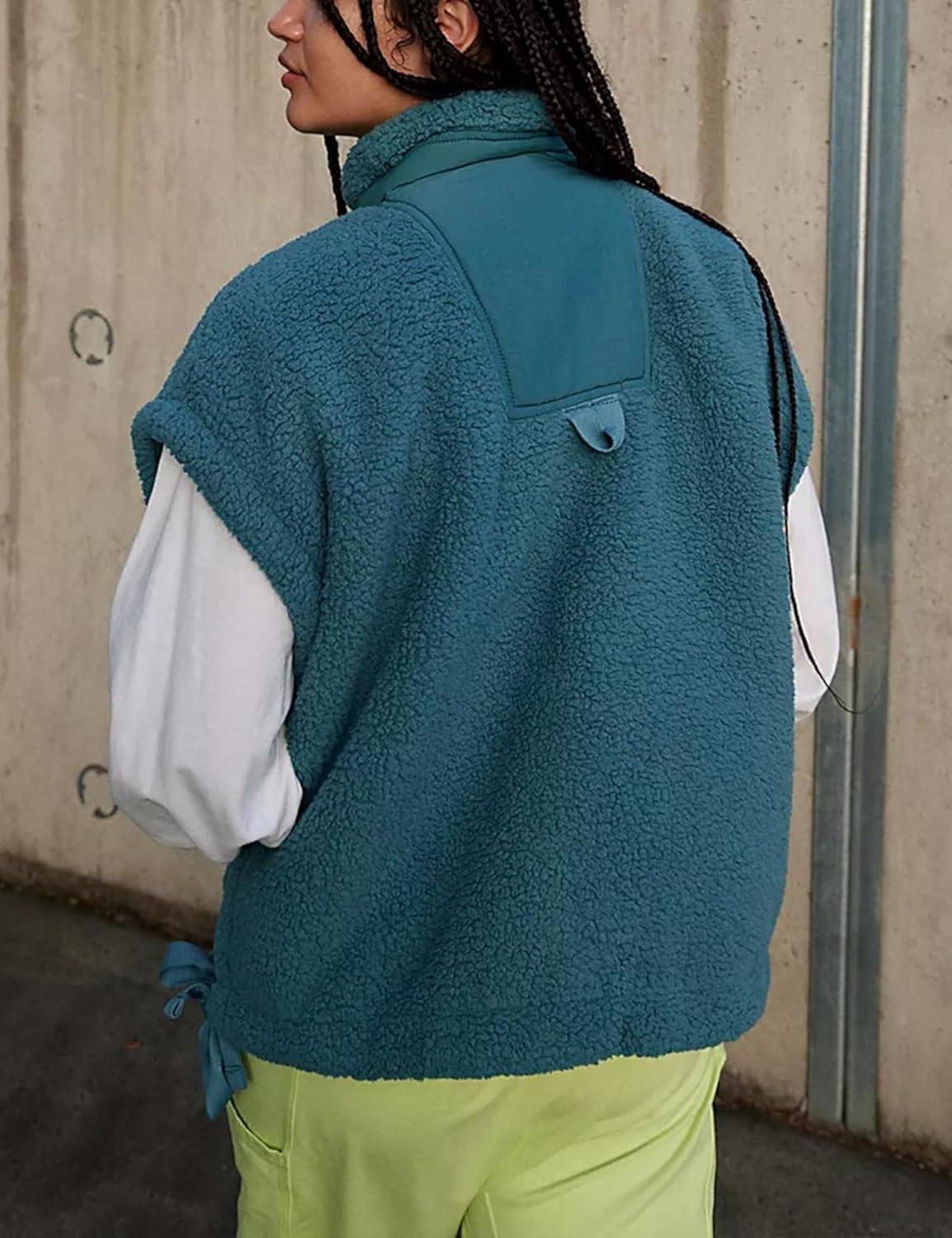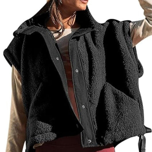 Disfruta de la calidez y suavidad de este chaleco tipo borrego, hecho para envolver tu día en confort.