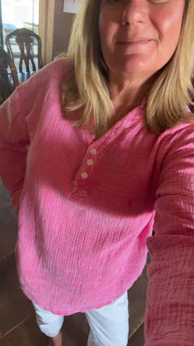 Una camisa muy fresca y cómoda, ideal para los días de calor. El tejido tiene una textura ligera que le da un toque especial, y el corte relajado la hace muy fácil de llevar.