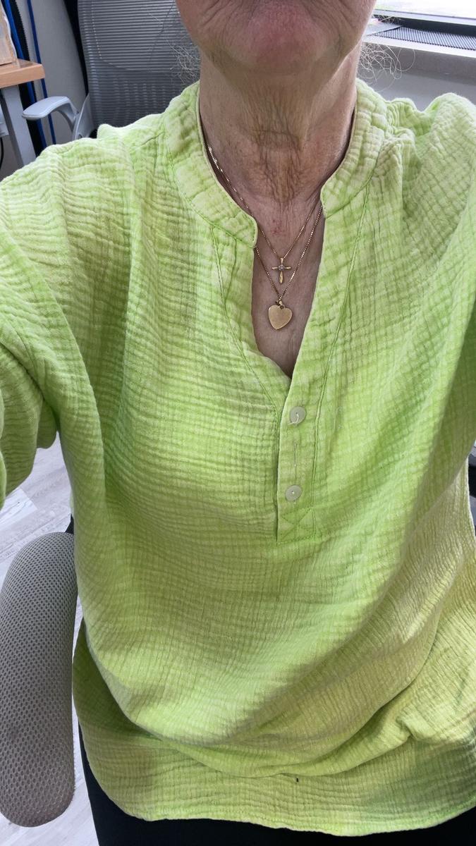 Se la regalé a mi madre y le encantó. Me sorprendió la calidad del material, suave y con buena caída. El diseño es sencillo pero moderno, y el color verde claro combina con casi todo. Es perfecta para un look casual pero cuidado. Sin duda, una prenda que repetiría.