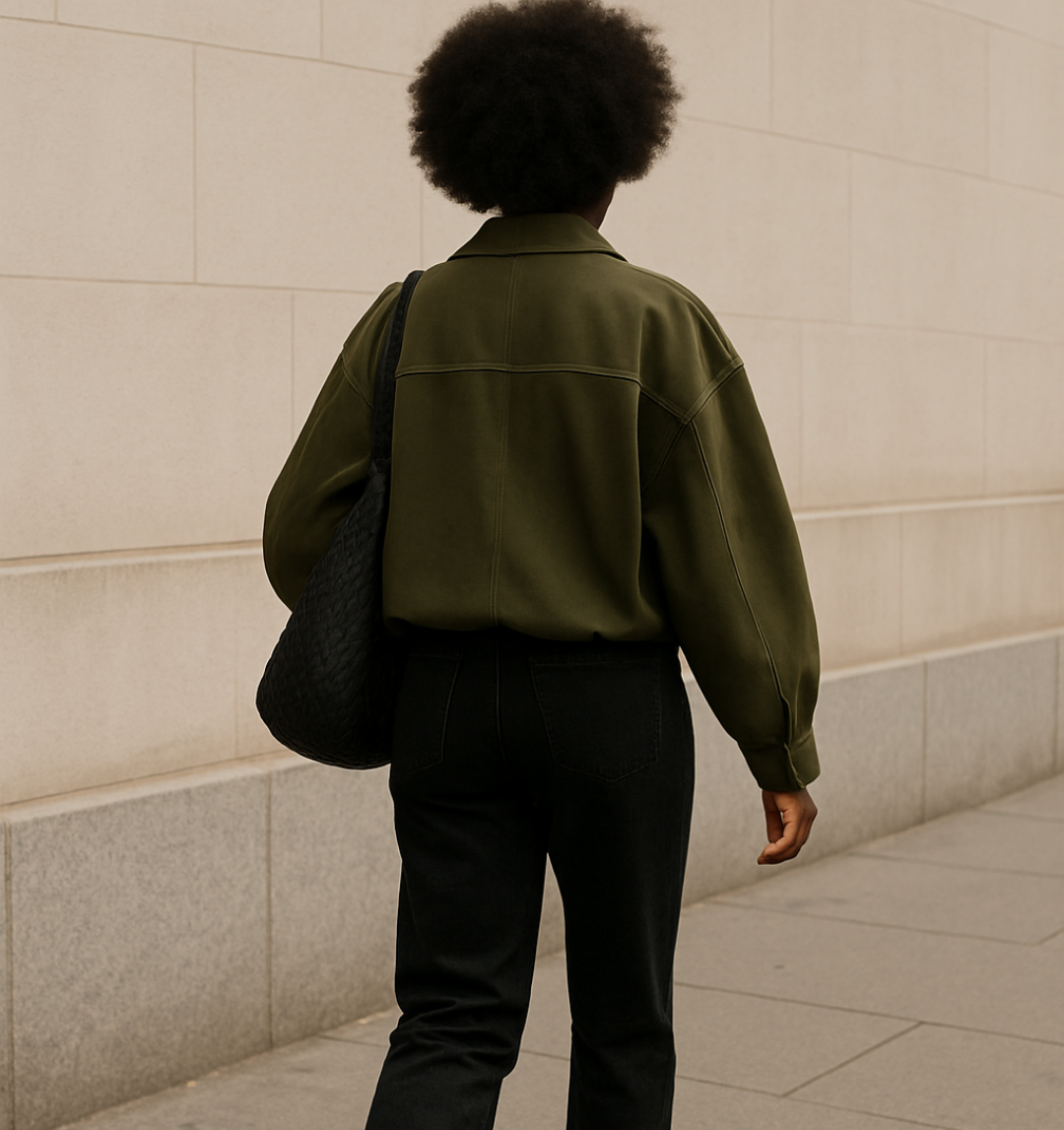La compré hace unas semanas y me sorprendió la calidad. El material es suave y se nota resistente. Me gusta que sea suelta pero con buena forma, no se ve descuidada. Ideal para looks casuales con un toque moderno.