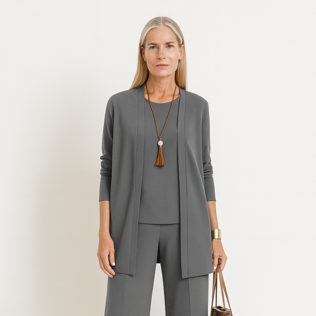 Me sorprendió lo mucho que estiliza el cárdigan largo; las líneas verticales me hacen ver más alta y delgada al instante. Es un conjunto de una calidad superior que uso tanto para la oficina como para cenas importantes.