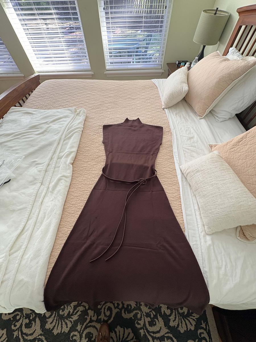 Tengo 56 años y valoro mucho la calidad de la tela; este conjunto se siente de lujo al tacto. El color marrón es muy favorecedor y el cinturón le da un toque moderno pero muy distinguido. Lo usé para una comida familiar y recibí muchísimos cumplidos.